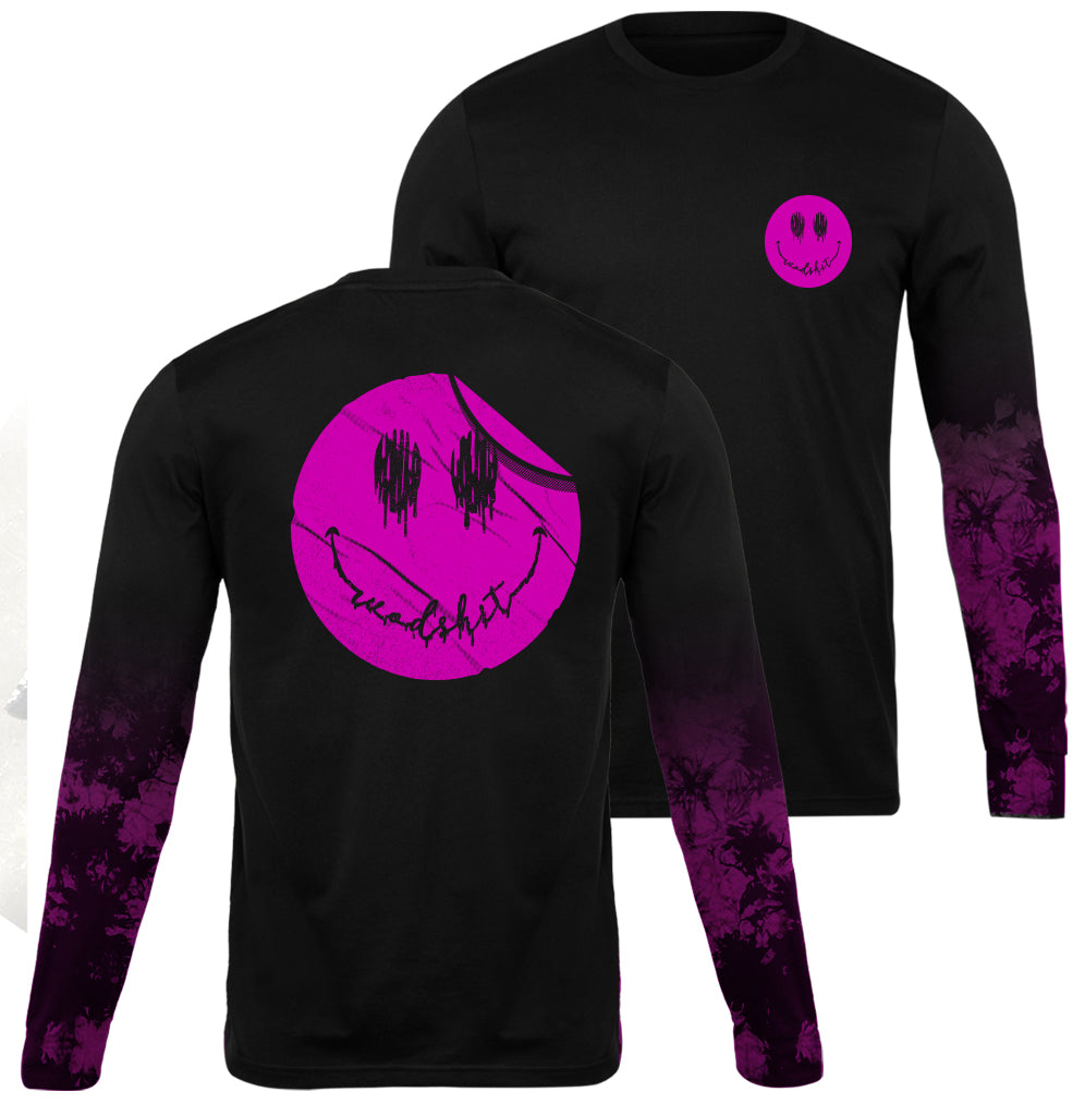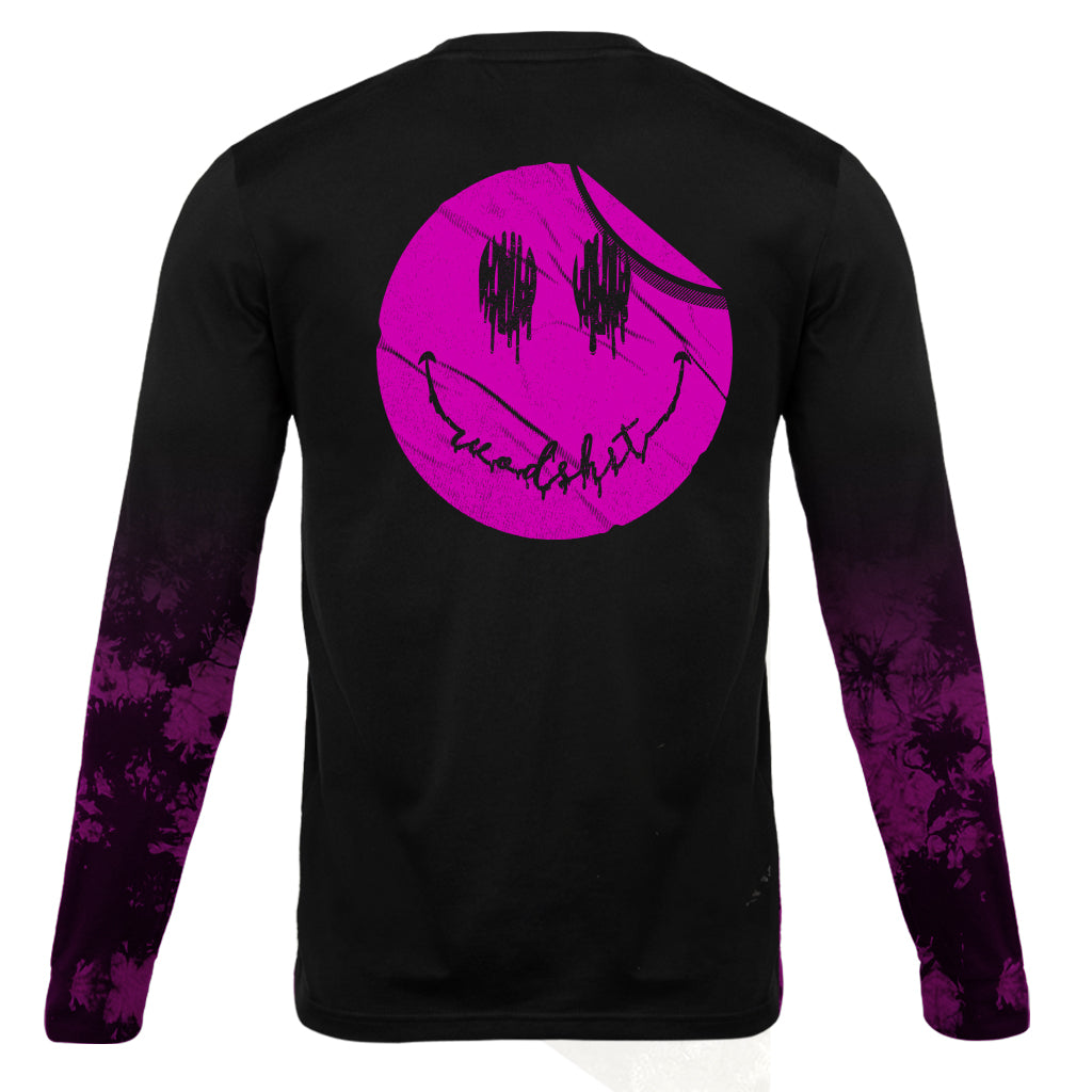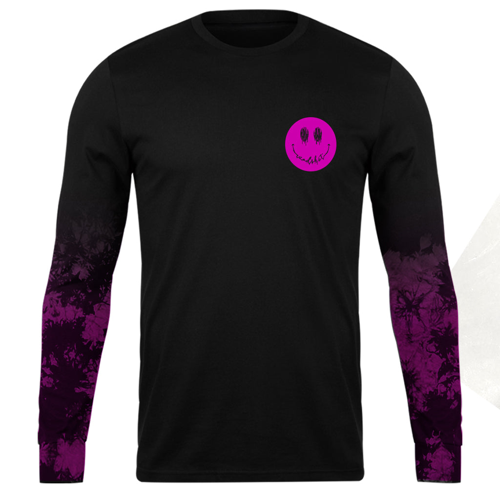 Polera manga larga cuello redondo de algodón calidad premium, calce clásico muy cómodo, tie dye color rosa, smile en color rosa